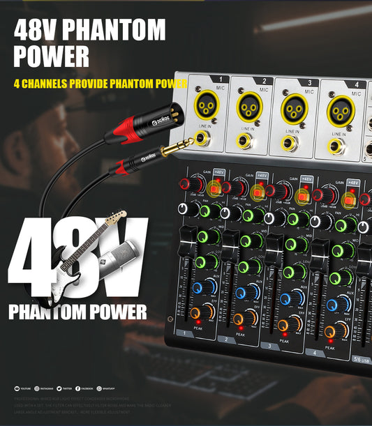DGNOG UR06 6 Channel Sound Mixer 16 DSP 48V Supply Bluetooth connection Equalizing Control for DJ Party Karaoke Music-Lover
