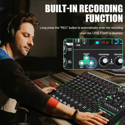DGNOG Audio Mixer D8 8-channel 99 DSP 48V Professional Effector with Bluebooth USB for Home Karaoke and Studio Recording