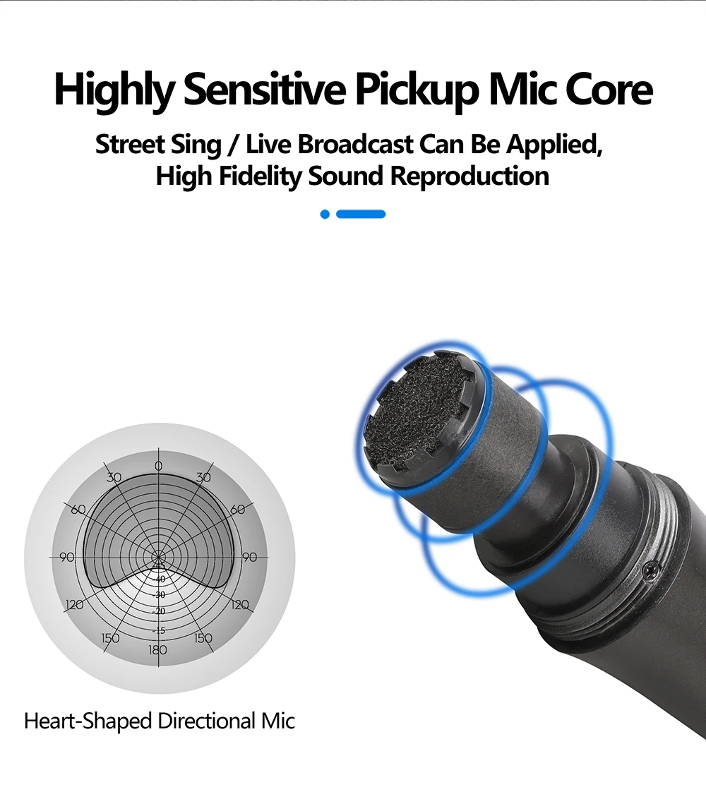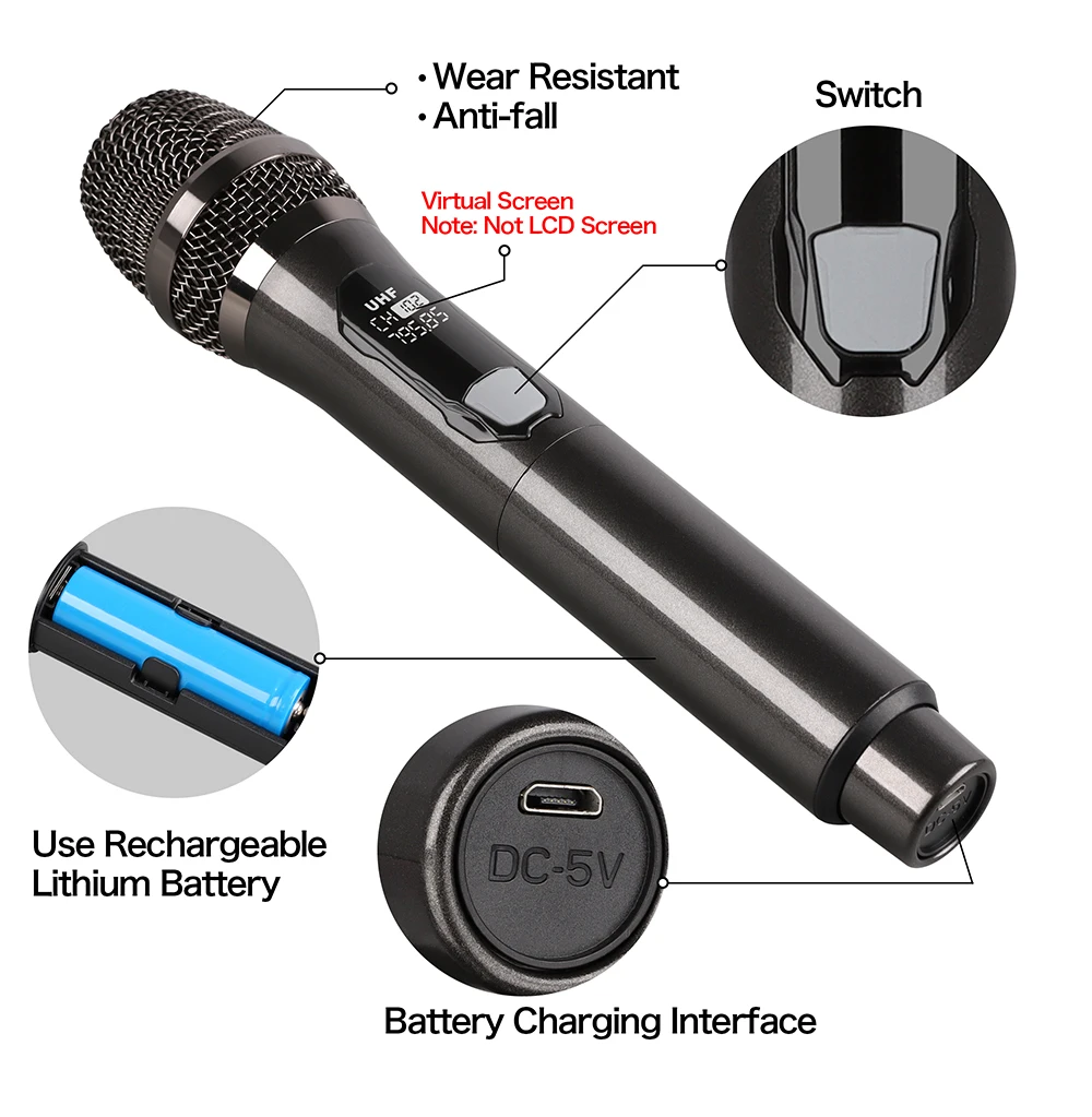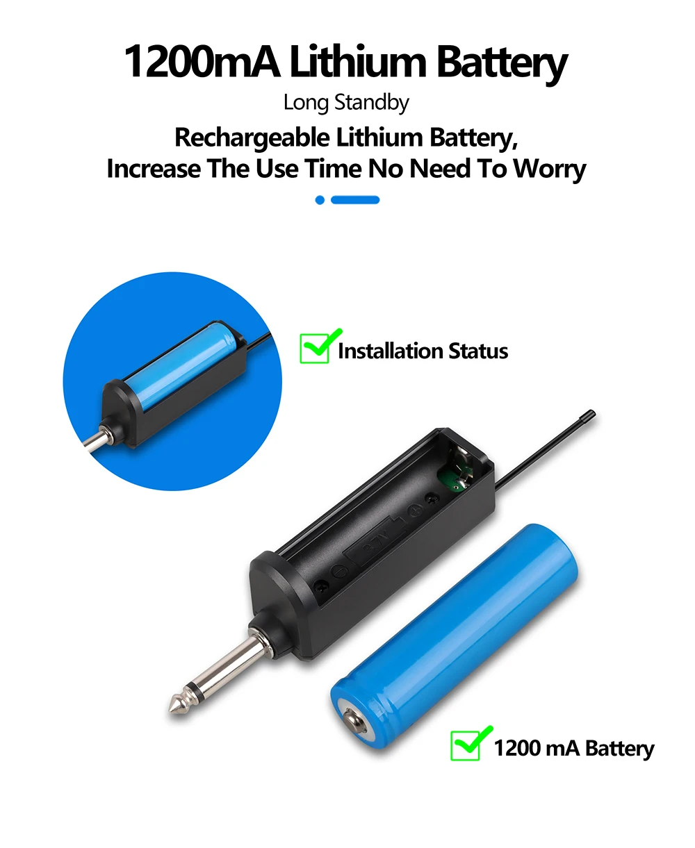 ♬【Battery Operated】--- The wireless professional microphone and receiver features 1x 18650 lithium battery-operated design, which can provide about 6 hours of working time and 2 hours of full charge. Used for home karaoke, classroom, office & business applications. Perfect for public audio & studio performances