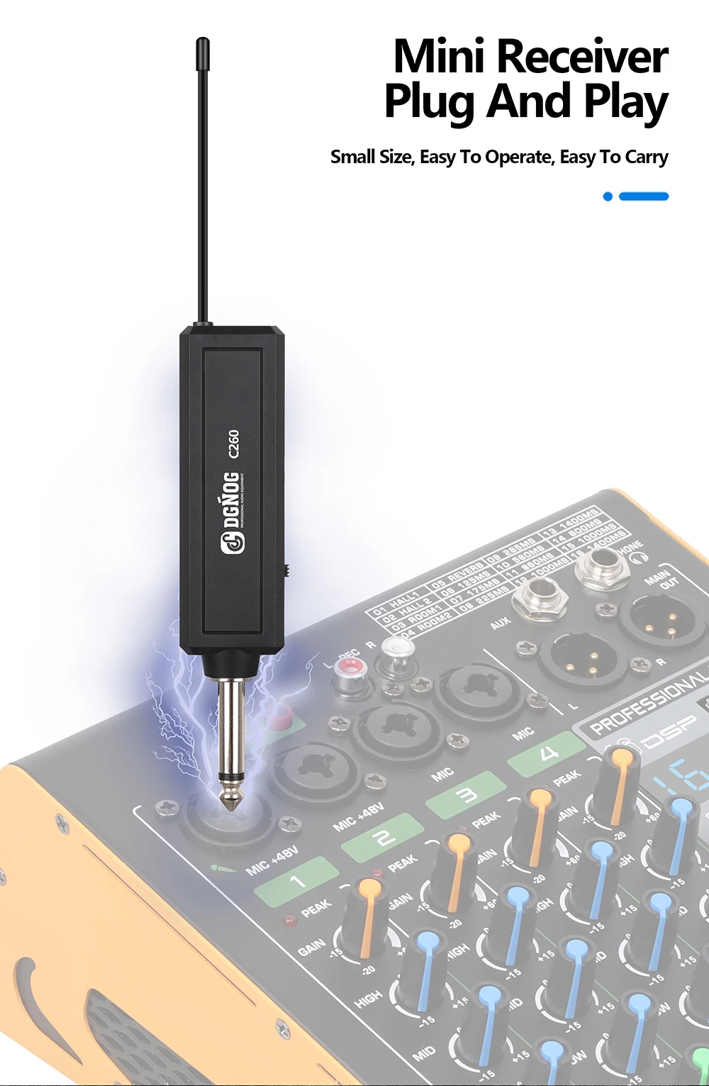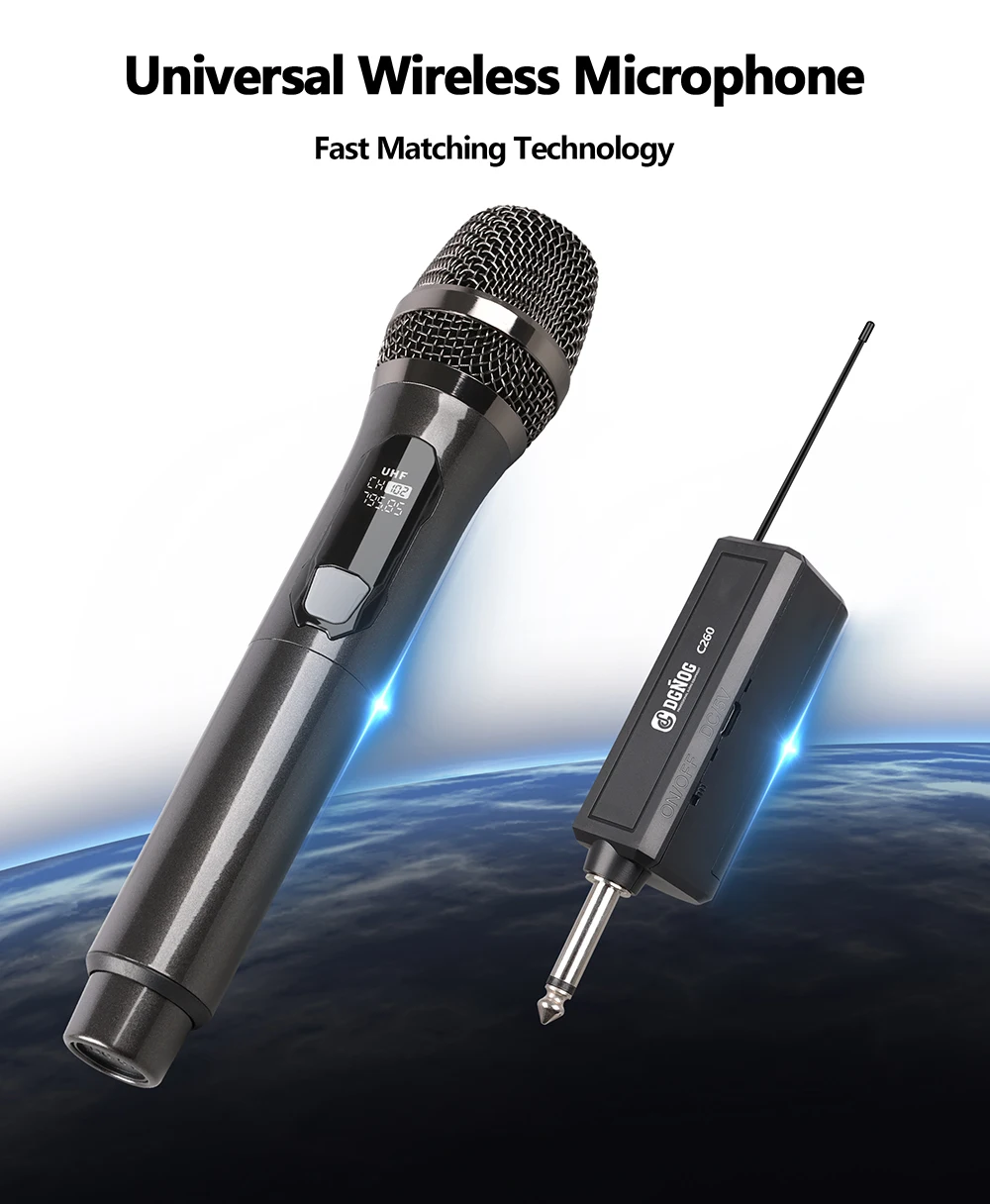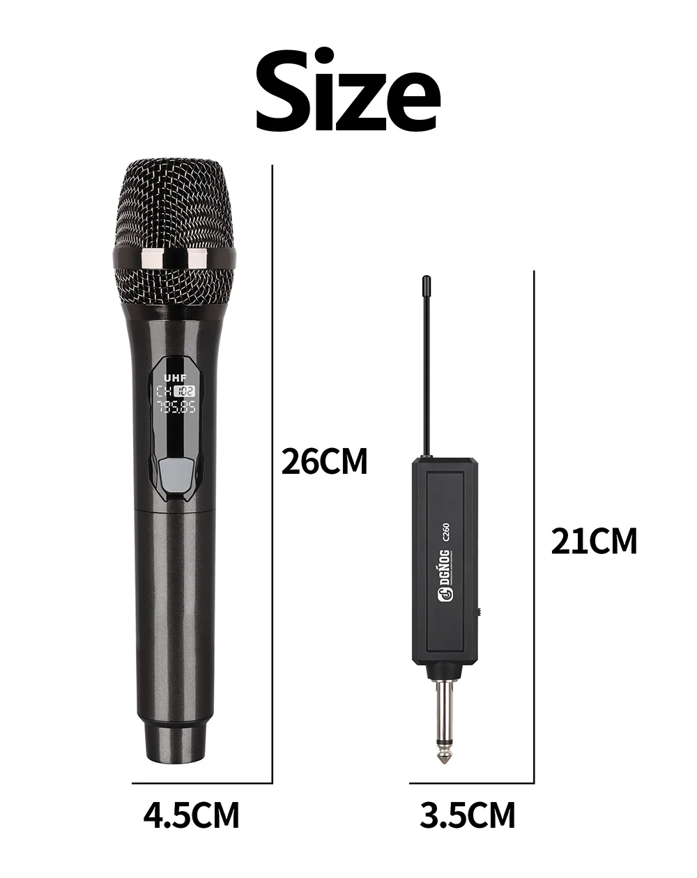 DGNOG C260 Rechargeable Fixed Frequency VHF 30m Range Wireless Handheld Dynamic Mic for Family Karaoke Stage Performance
