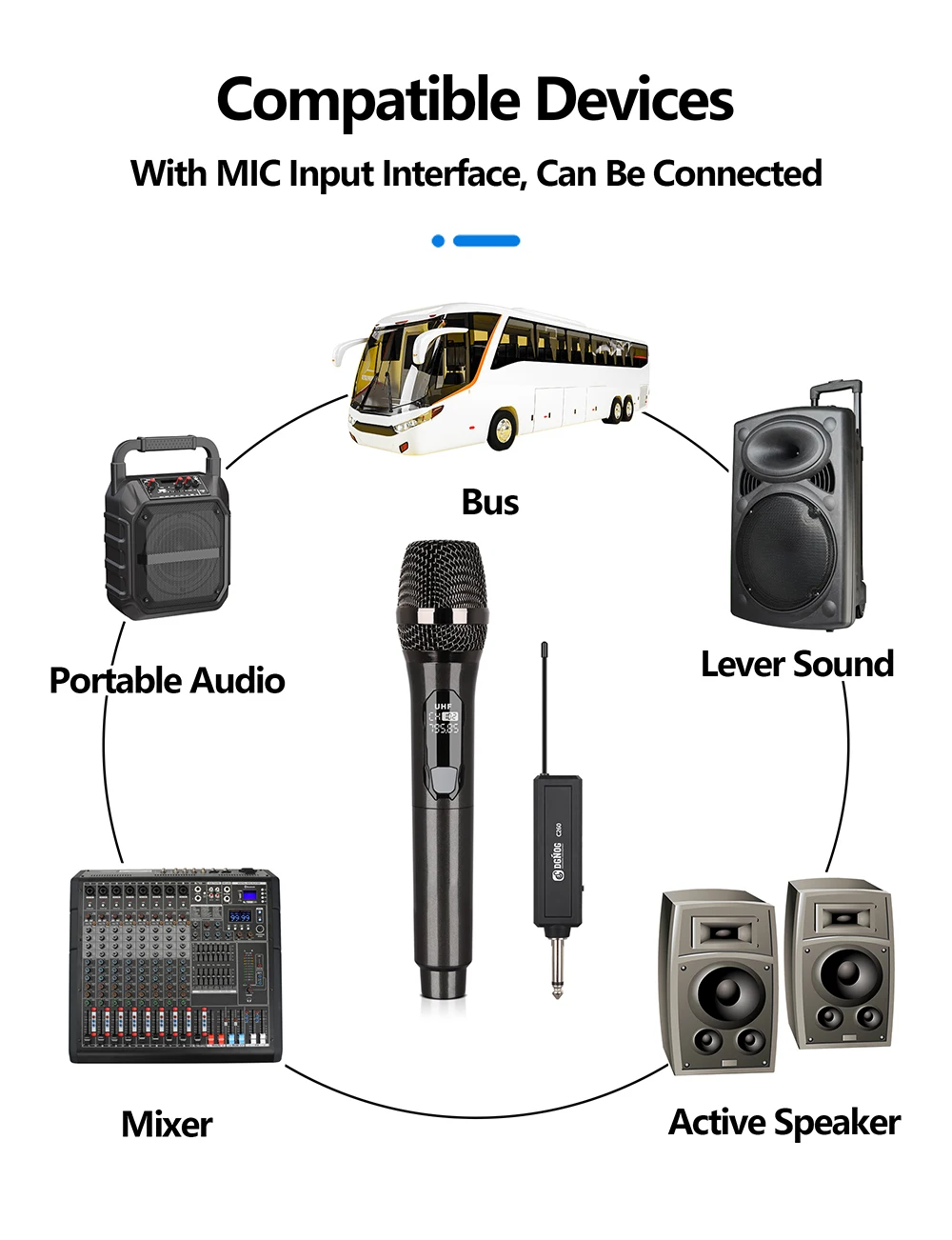 ♬【Easy to Use Microphones】--- Just turn on the receiver and wireless mics, they will match automatically. Wireless Microphone With 6.3 mm(1/4'') to 3.5 mm(1/8'') converter, for with MIC jack speaker, Singing machine, audio amplifier, PA system, Voice amplifier and more Streaming multimedia equipment, only plug in MIC jack. Note: It is not compatible with laptop, iPad, cellphone and AV receiver.