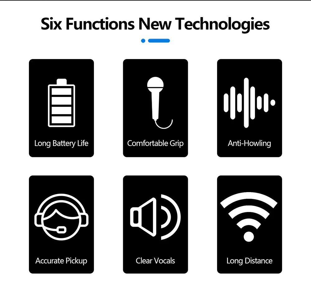 ♬【Clear and Pristine Voice Amplifier】--- Wireless microphones with professional cardioid dynamic capsule, the system can reproduce more excellent, clear, pure and full sound and eliminate background noise and howling. Amplifies your voice and saves your throat when you have a difficult time speaking loudly enough.