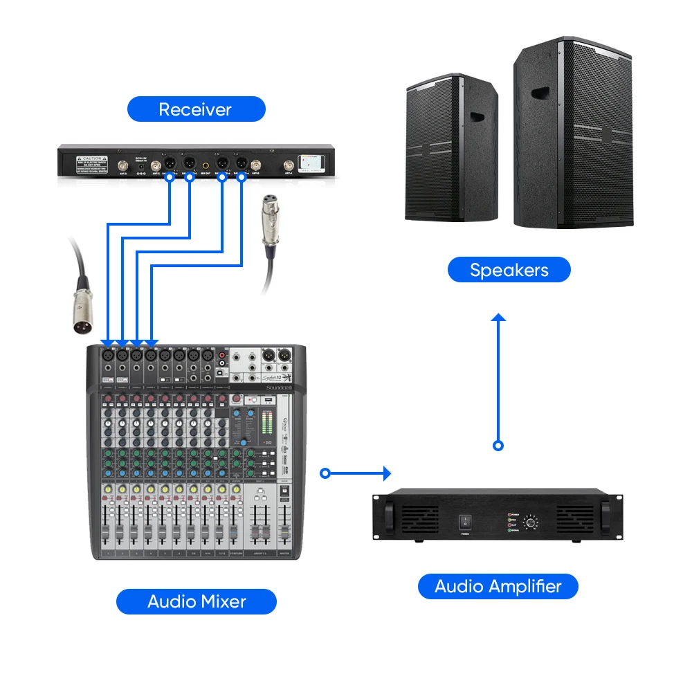 DGNOG DF204 Professional 4 channel Wireless Microphone System Stage Performances UHF Dynamic Handheld Mic for karaoke Studio KTV Party