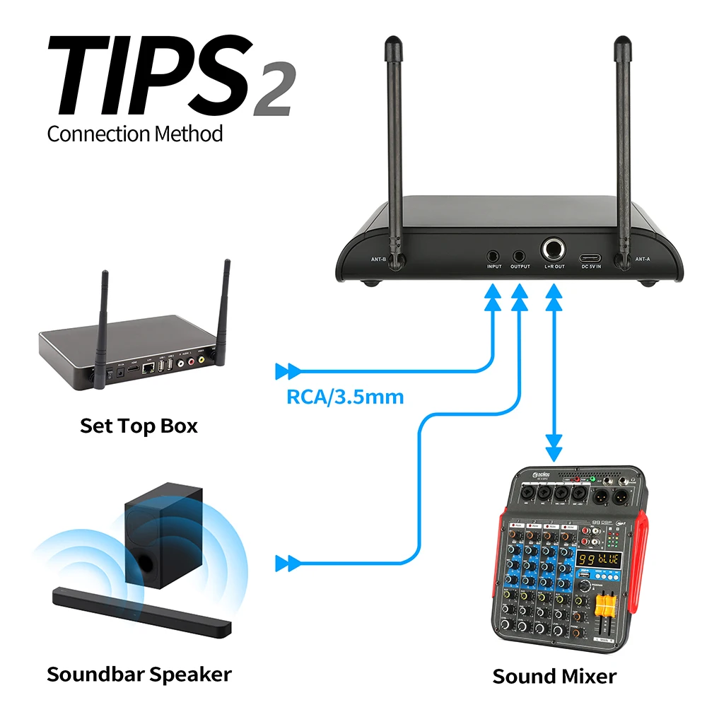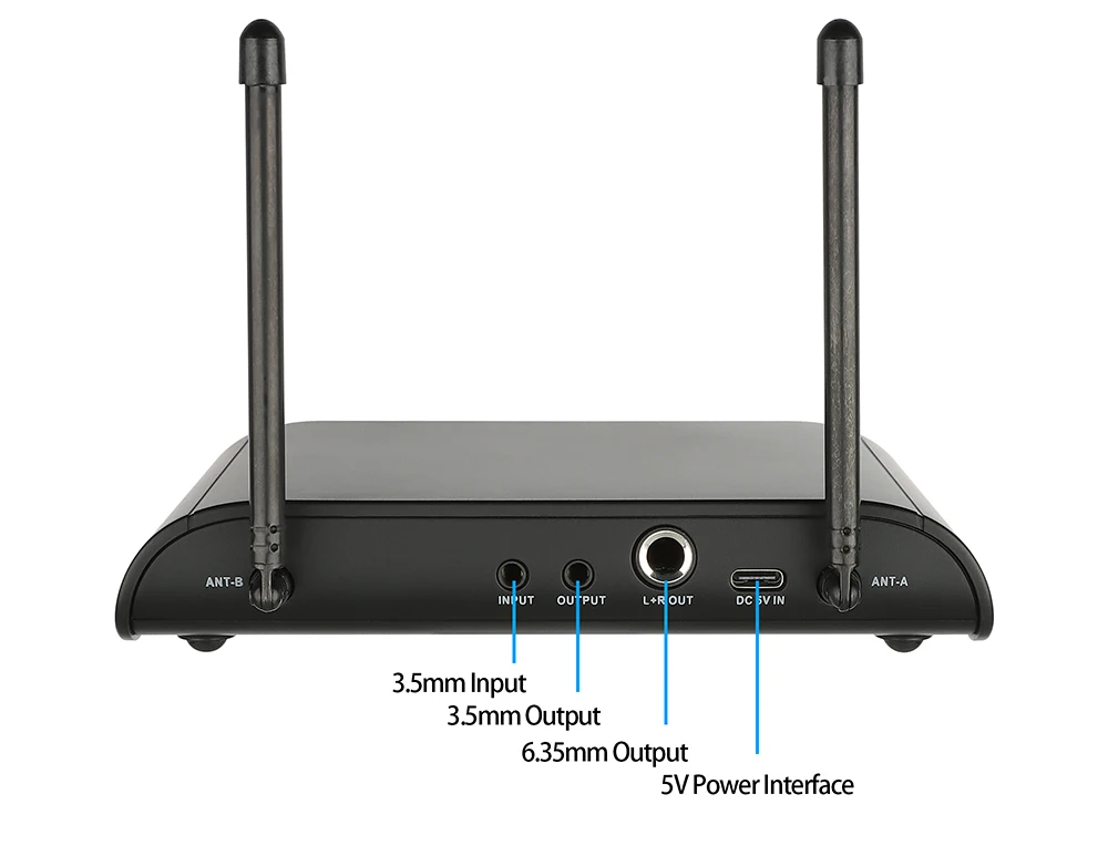 [Packing list ]: If you have any question, please contact us anytime. Packing list: 1*RCA cable, 1* 3.5 mm to 3.5 mm signal cord,1*3.5 to 6.5 converter, 1*receiver, 2* microphone, 1*USB to type-c power cable.