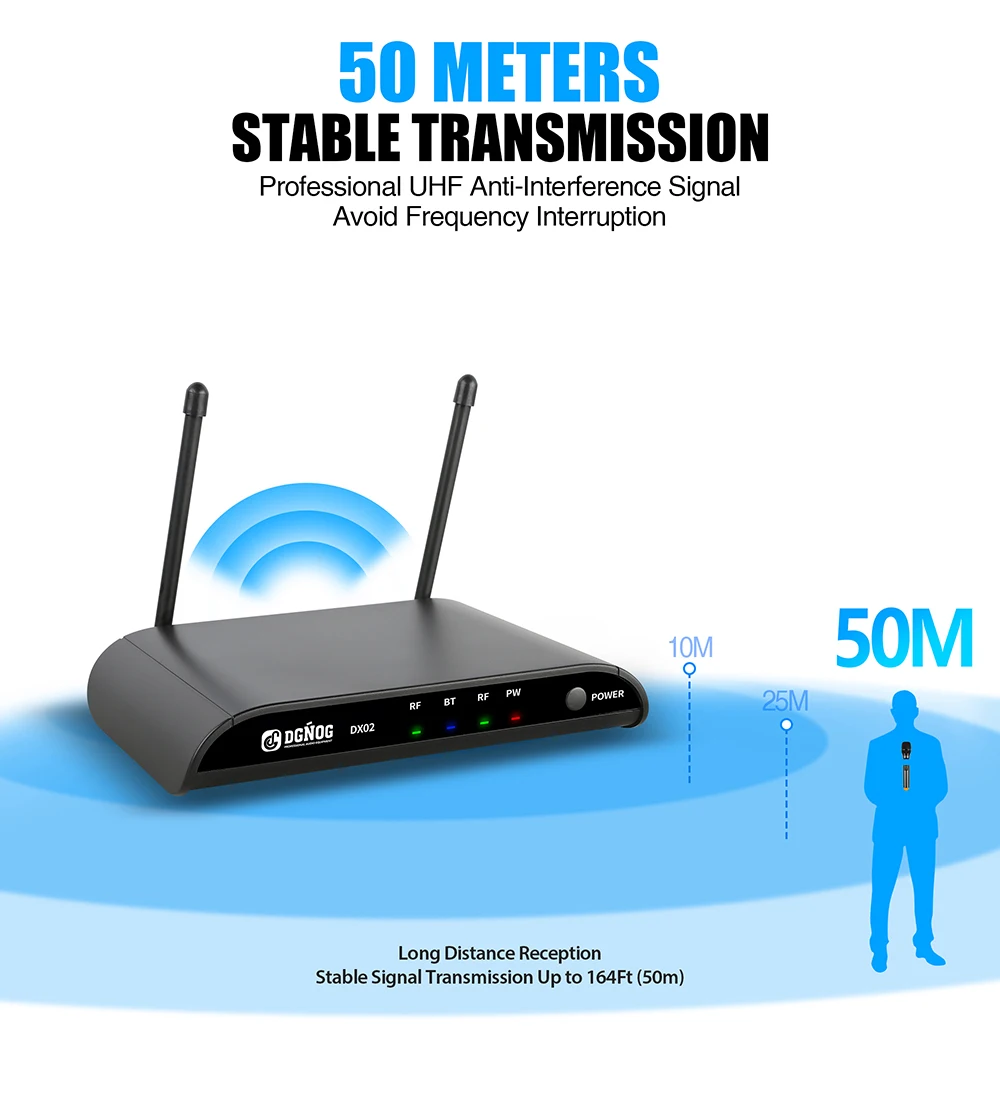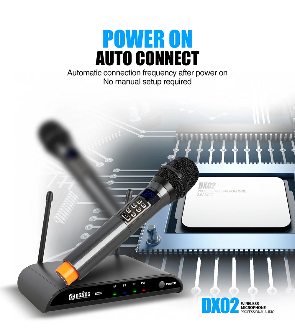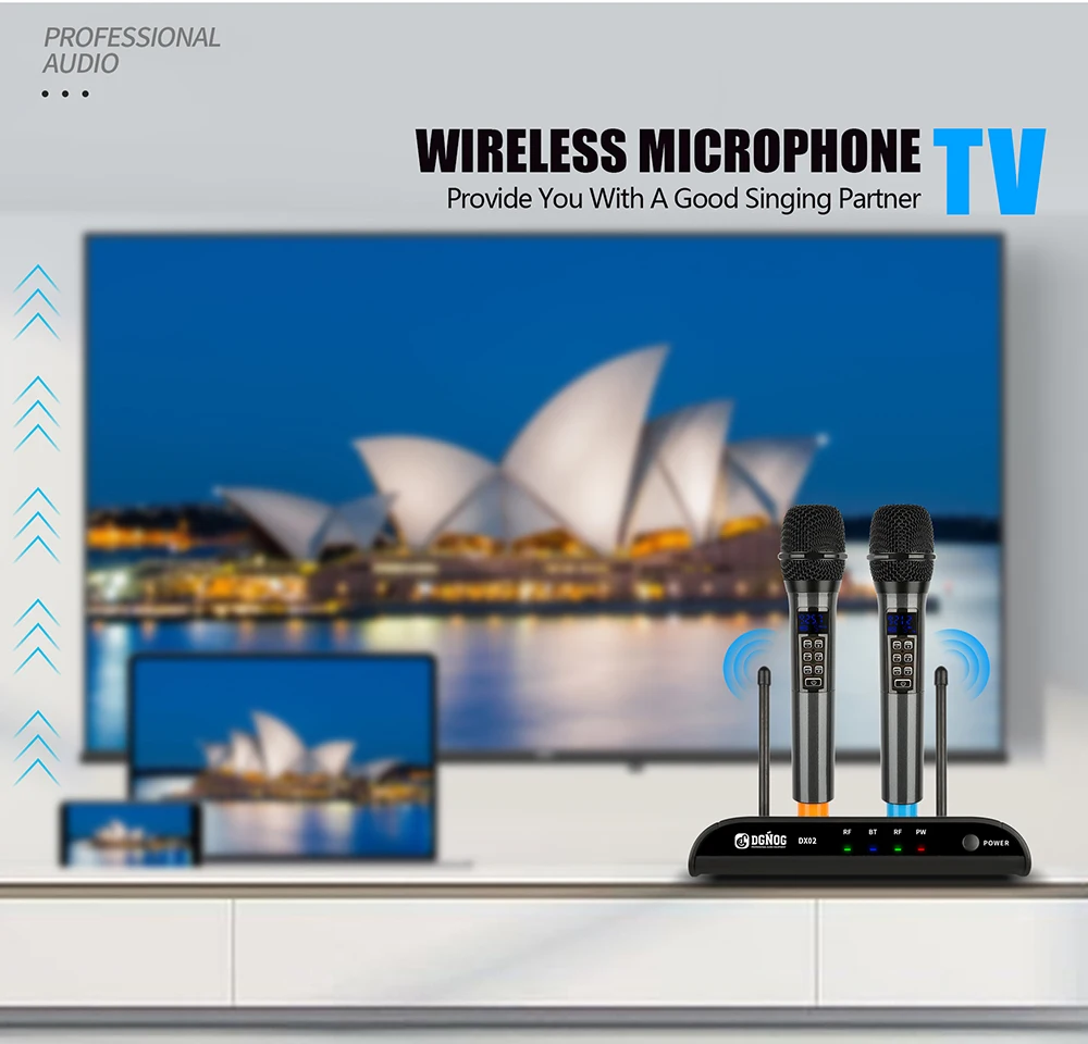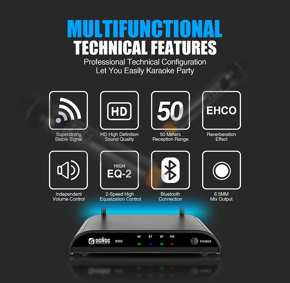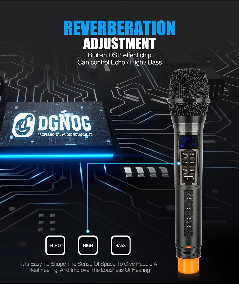 DGNOG DX02 UHF Dual Handheld Wireless Microphone 2-Speed High Equalization 2 Channel TV Karaoke Mic for Family Party