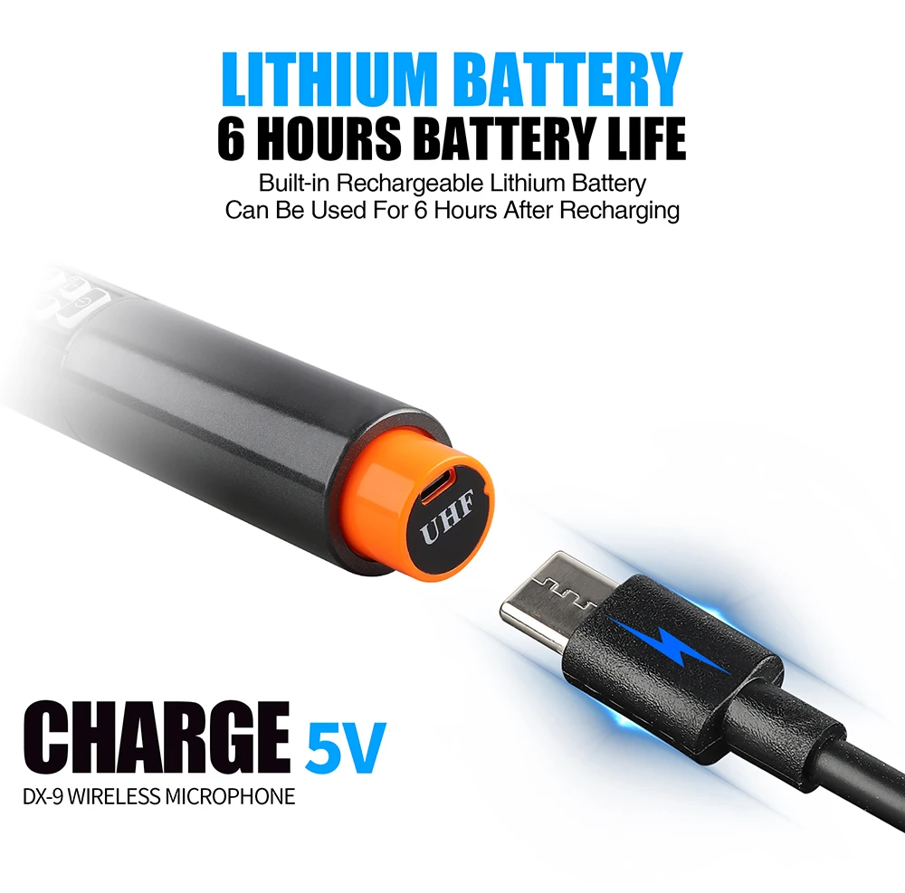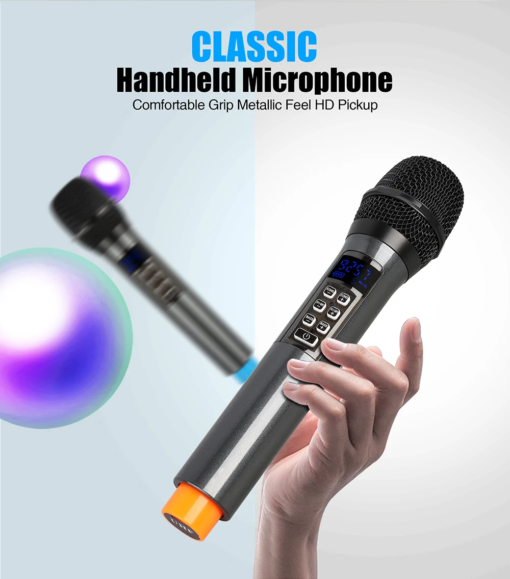 [Very Easy to Use]: Plug and play. ●Comes with two handheld wireless karaoke microphone, you can do all you want on the microphone and see clearer from the large led display. ●The Wireless Microphone Receiver has a USB to Type-c Power Cable, Or use power Bank (5V-1A) supply Power, then long press the power button to turn on the receiver for use. ●Each microphone ues 2 AA batteries (not included), Please using alkaline AA batteries for longer karaoke time with correct direction.