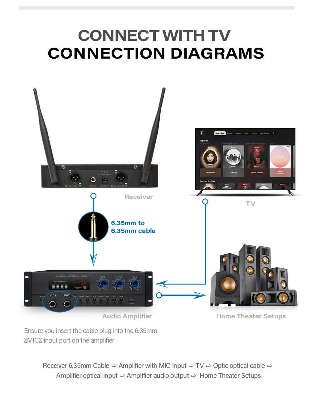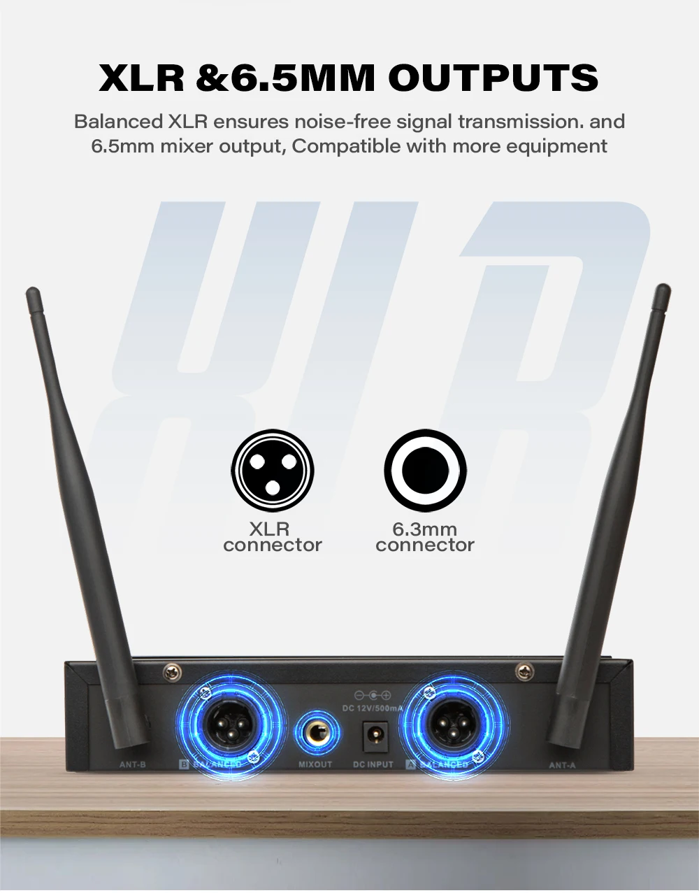 【Wide and Stable Signal Coverage】 - The transmission range of our wireless mics is up to 2060ft, which helps deliver distortion-free sound with stable signals, zero latency, anti-howling, and anti-interference features.