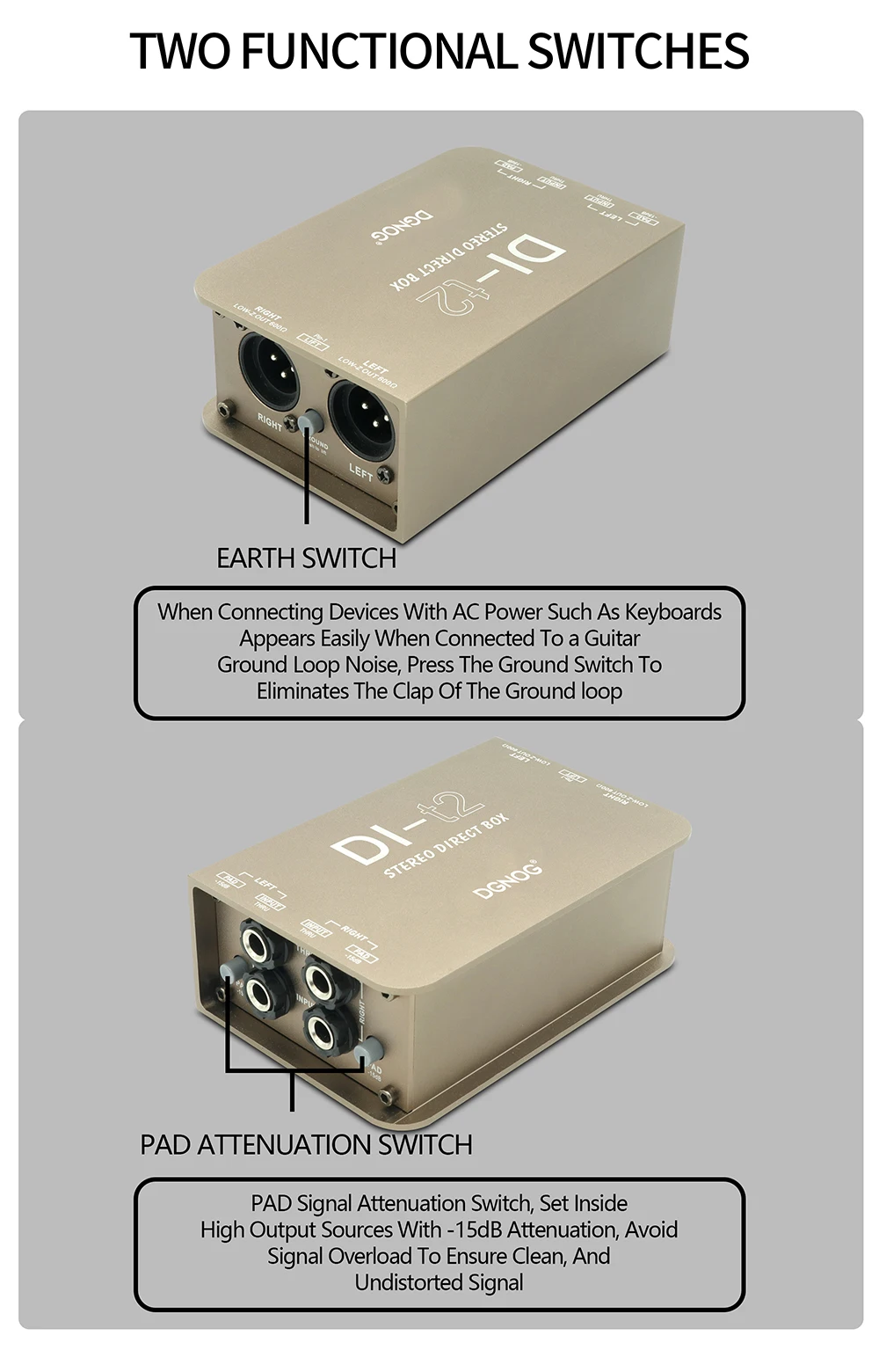 DI-t2 Professional Stage Equipment High Quality Two Channel Passive Impedance Transformer For Stereo Keyboards And Drum Machines
